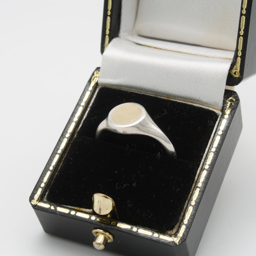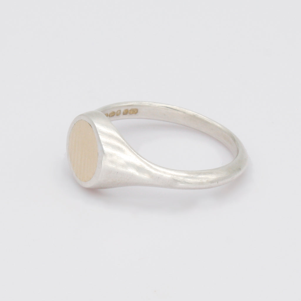 Evoking the luminescence of the full moon, this sterling silver signet ring features an 18k gold lunar motif.