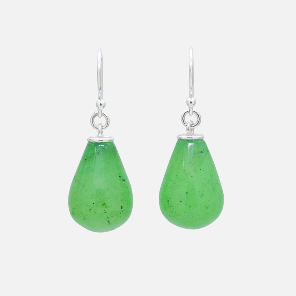 This sterling silver earring pair features two green quartzite stones that appear like jade drops.