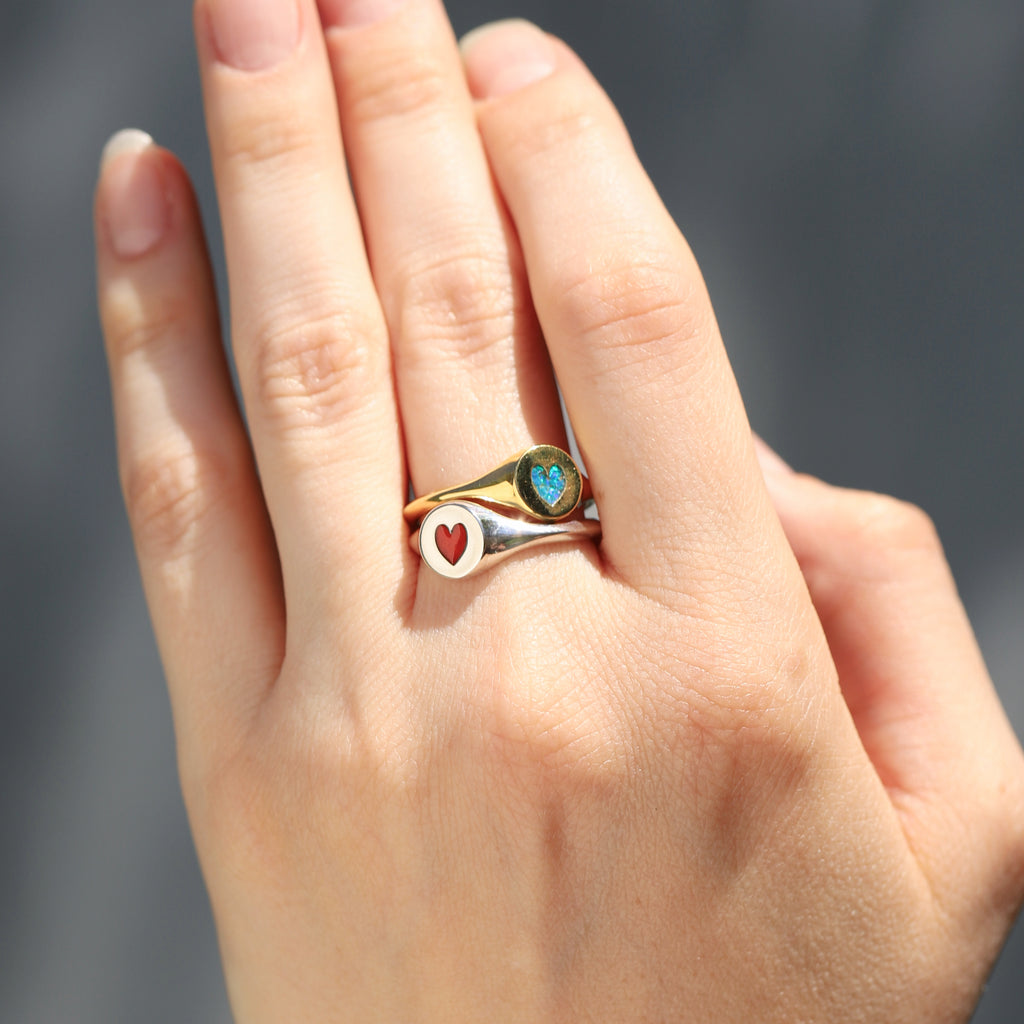 Red Heart Signet Ring in Sterling Silver